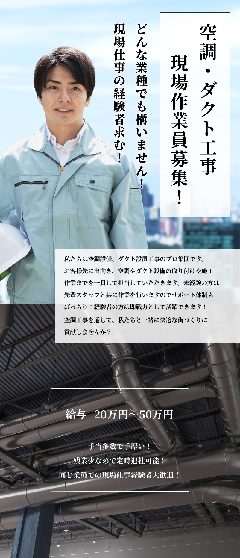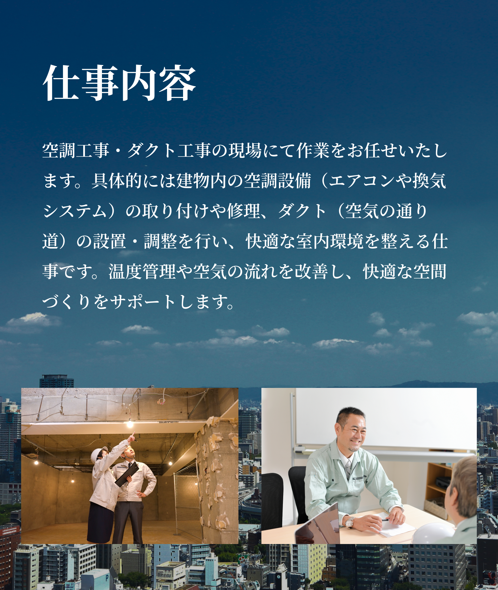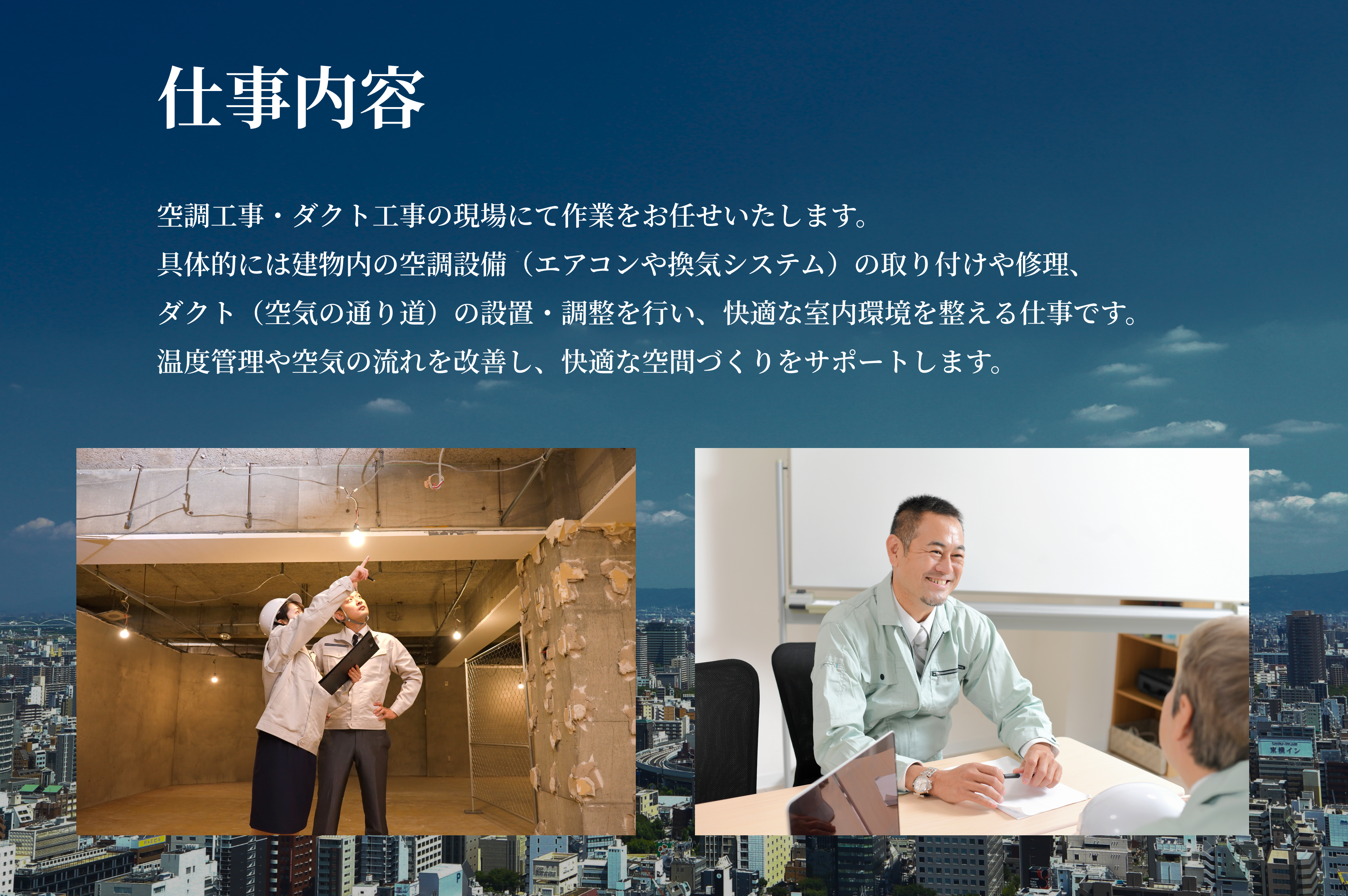 | 業務内容 | 空調工事・ダクト工事 |